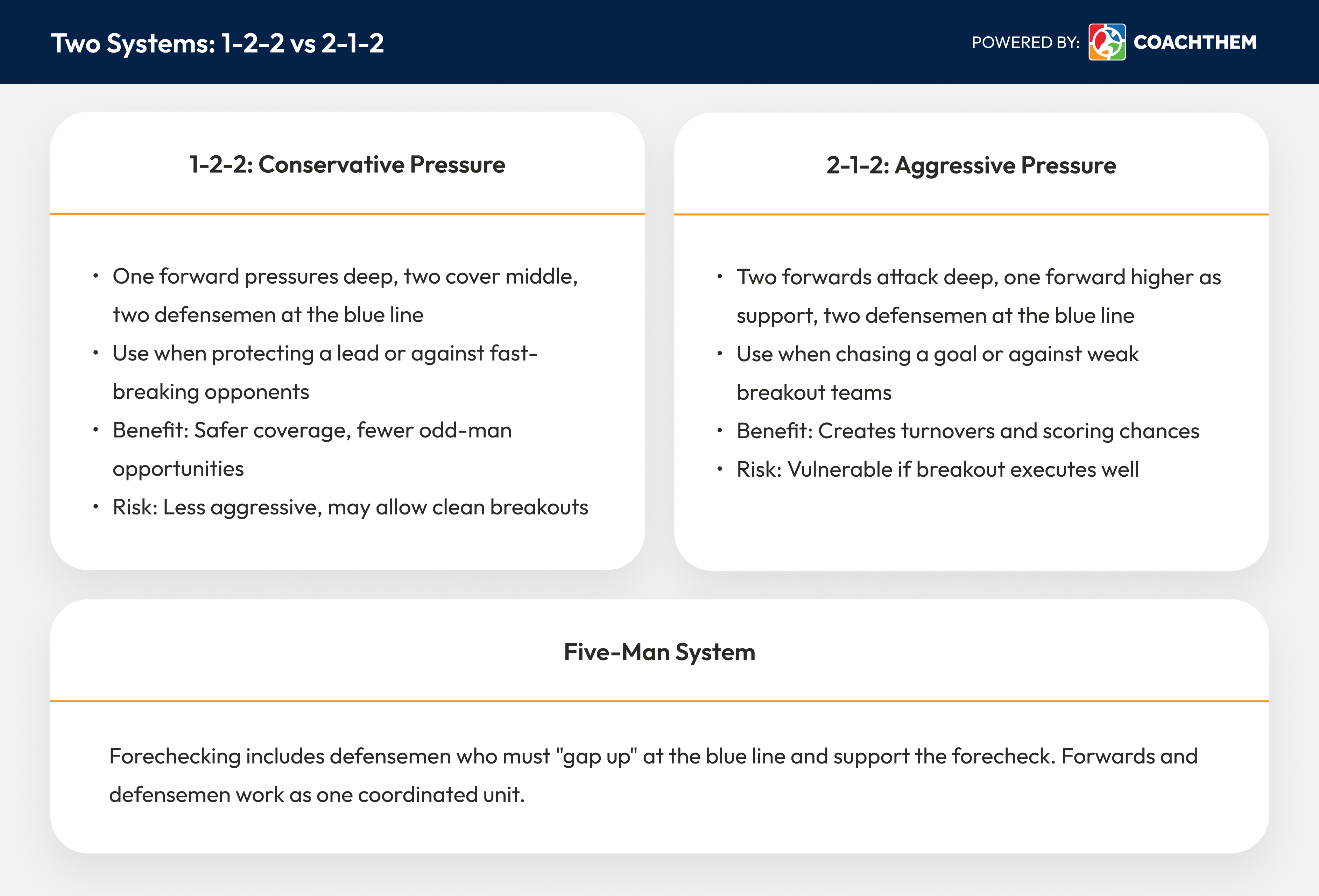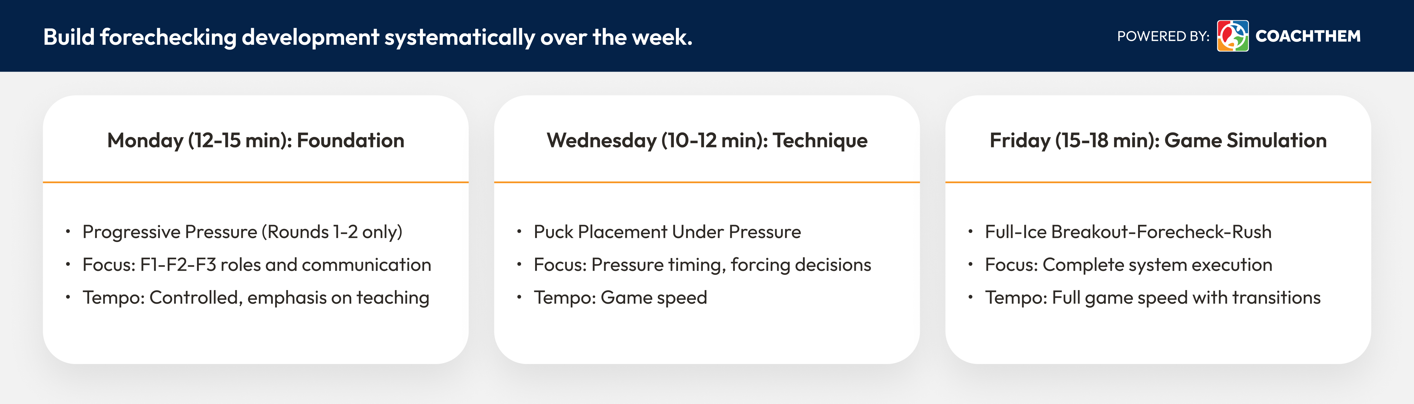 Weekly use: 1-2 times per week as a primary forechecking drill