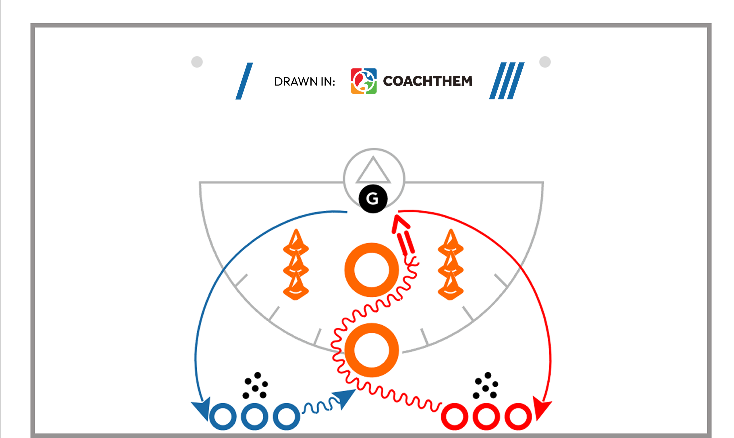 Hockey practice drills focused on breakouts, blue line activation, and small area games. Help your players improve decision-making, puck support, and compete level in every practice.