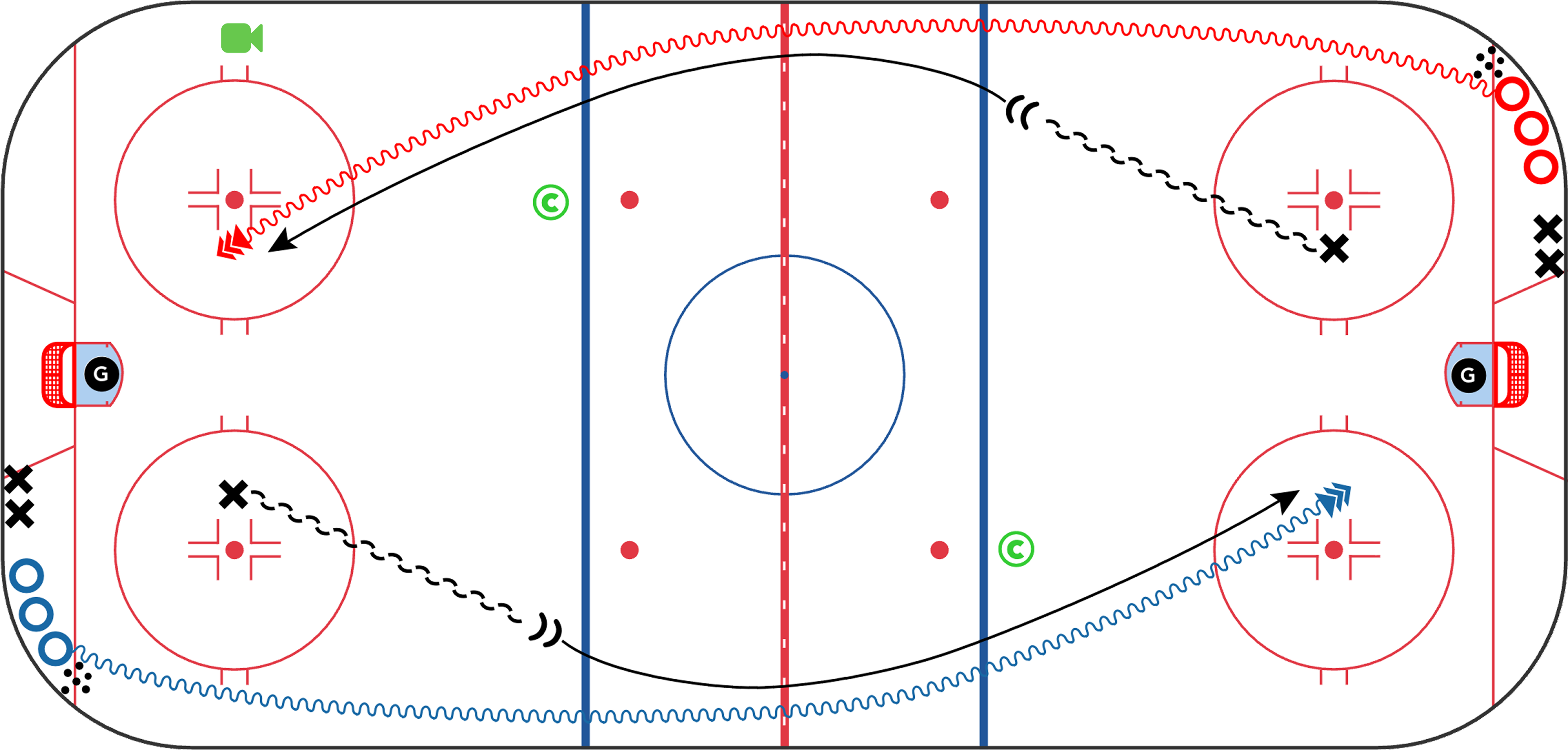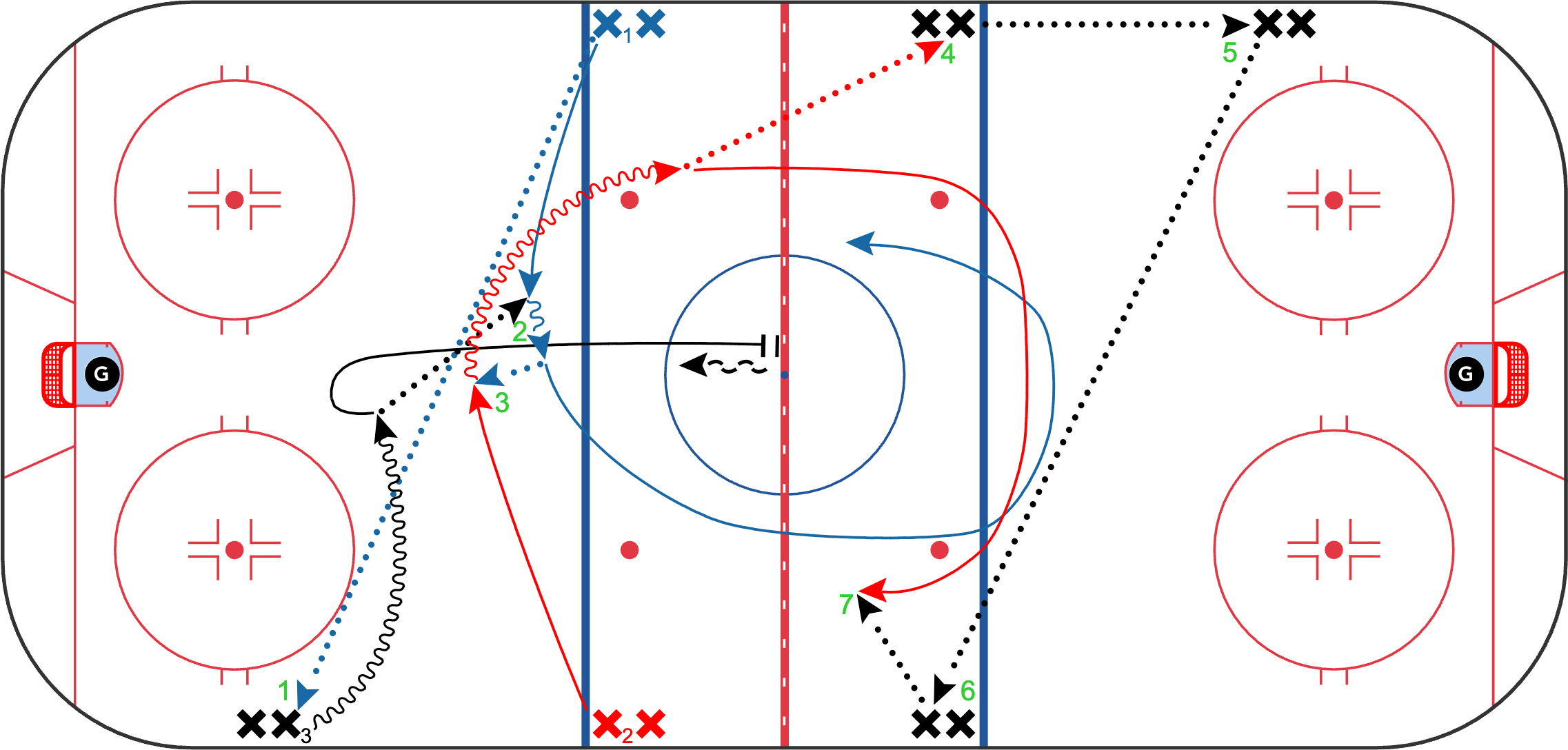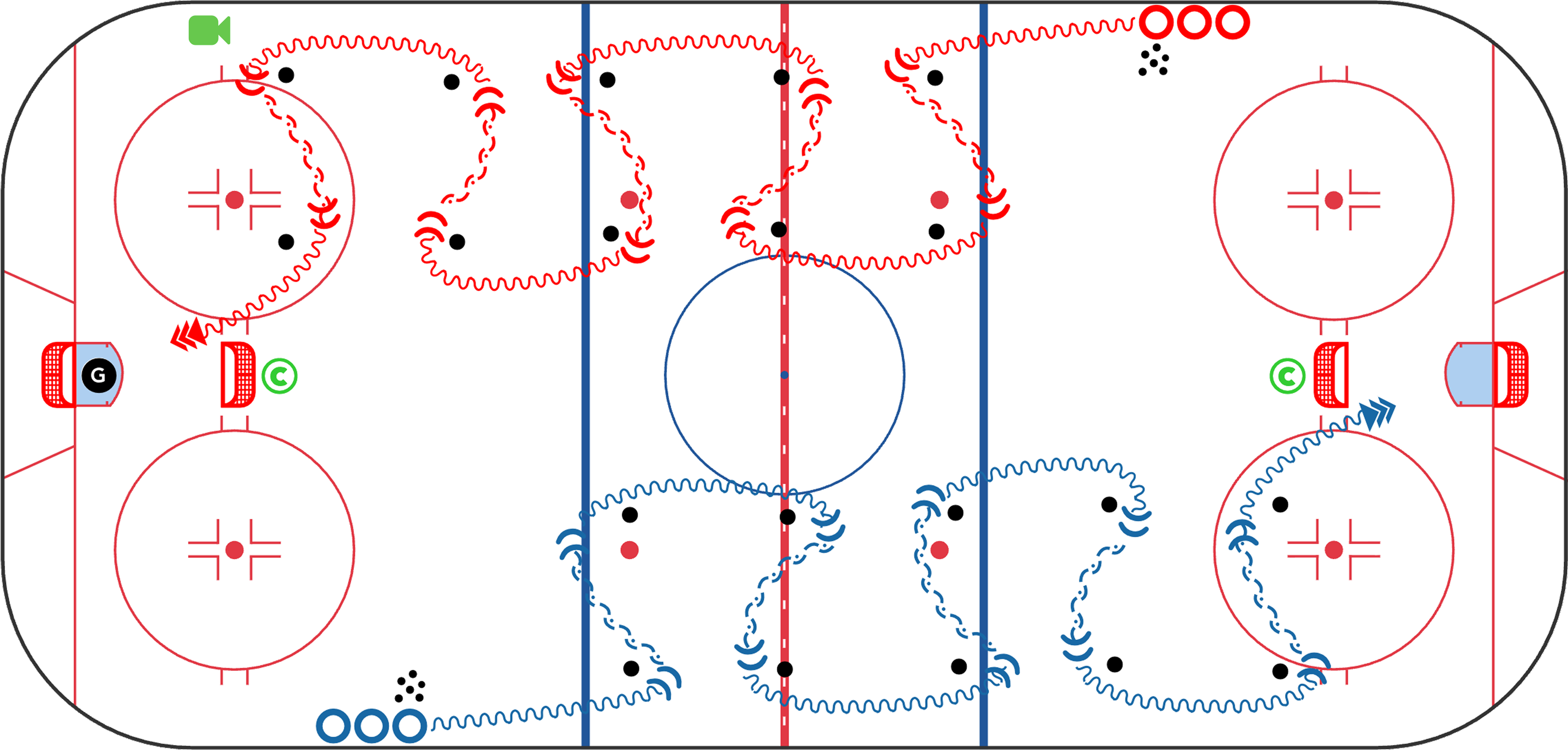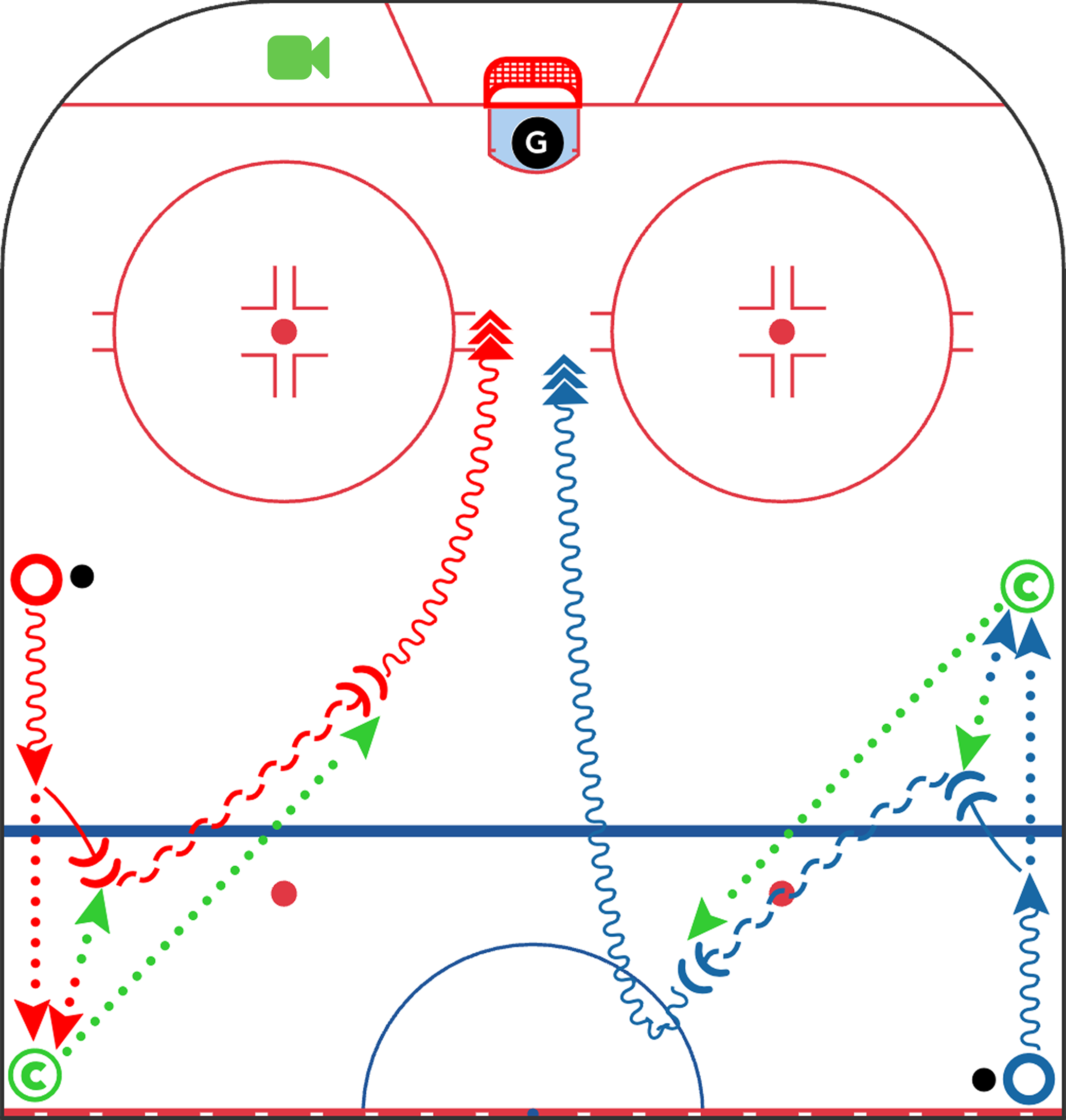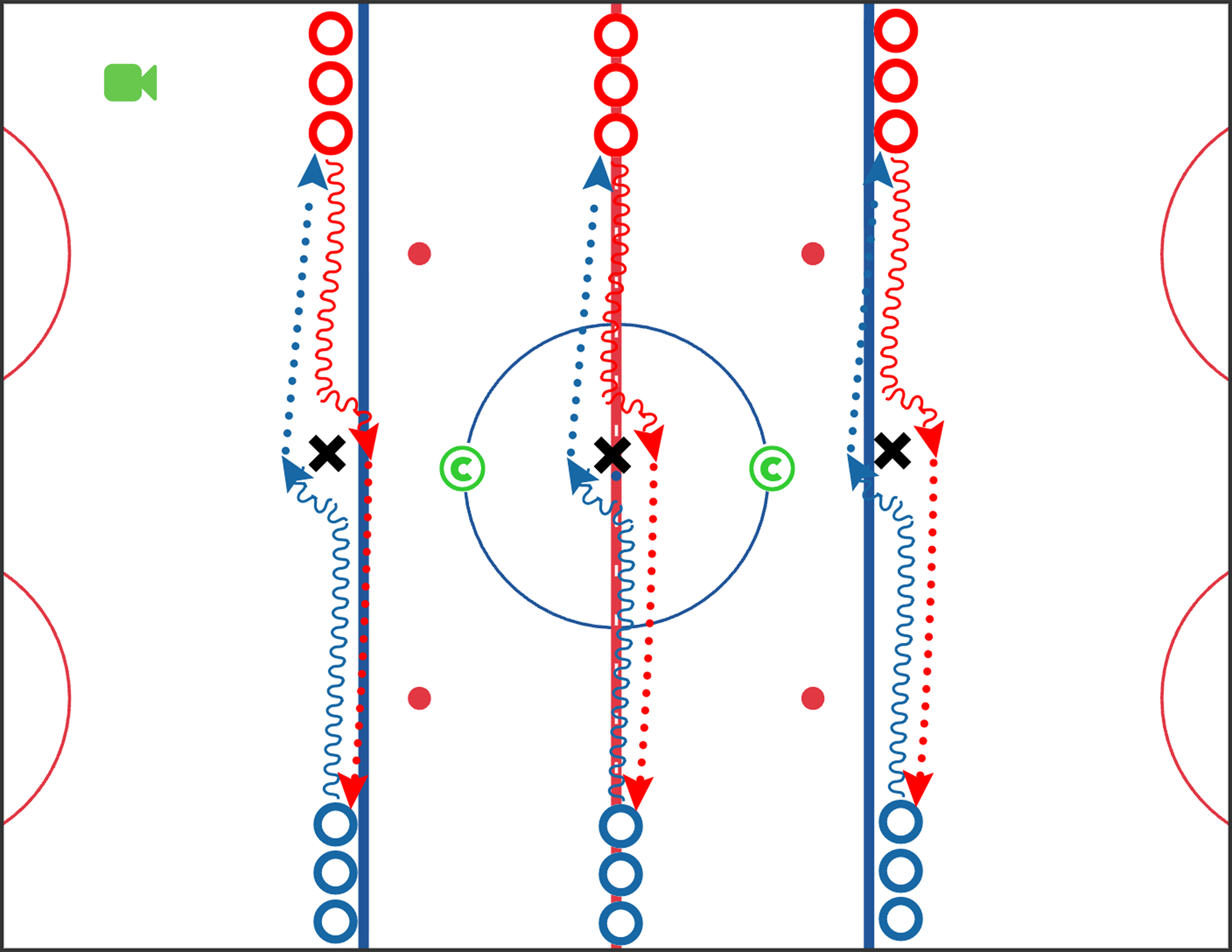 The most-watched drill of the year. This sequence blends touch passing, puck support, scanning, and shooting in stride - all wrapped into one clean progression. Coaches love the flow, players love the reps, and the habits transfer directly into offensive zone entries.