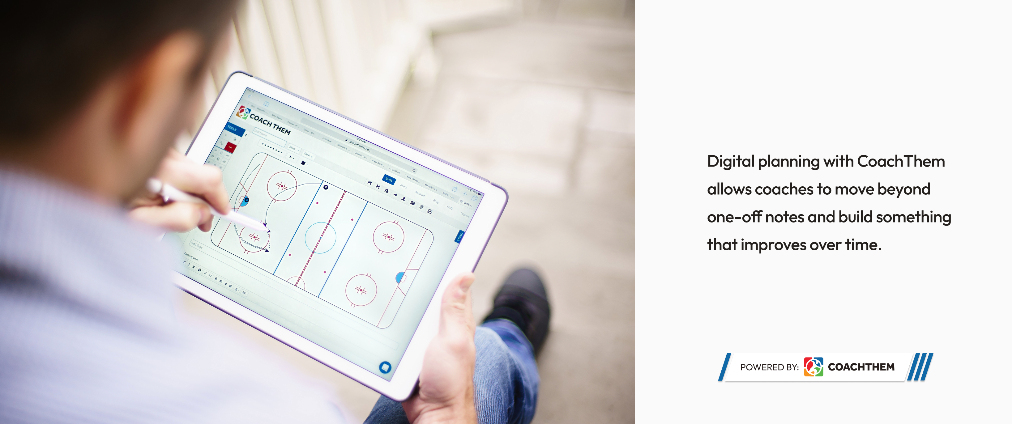 Yes. Whiteboards are great for on-ice explanations. Digital planning tools like CoachThem complement them by handling organization and preparation.